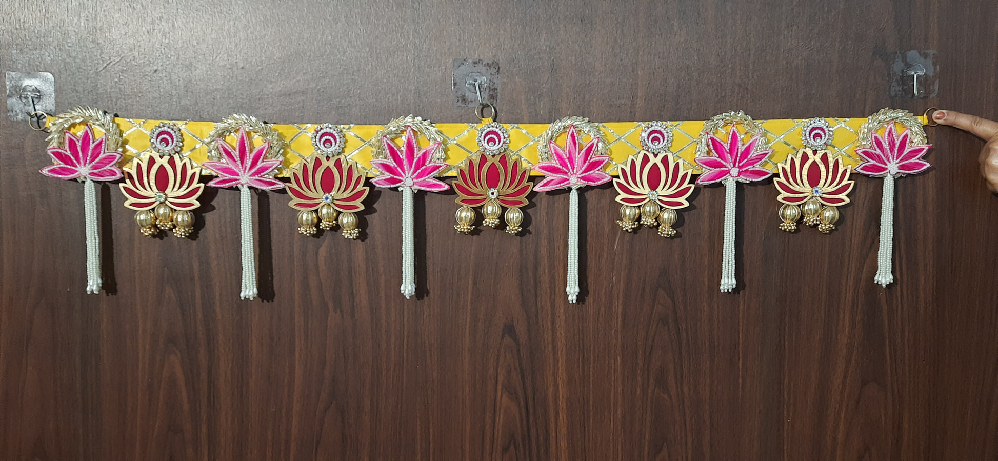 Bring auspicious vibes and traditional charm to your entrance with this Handmade Lotus Pearl Toran.
