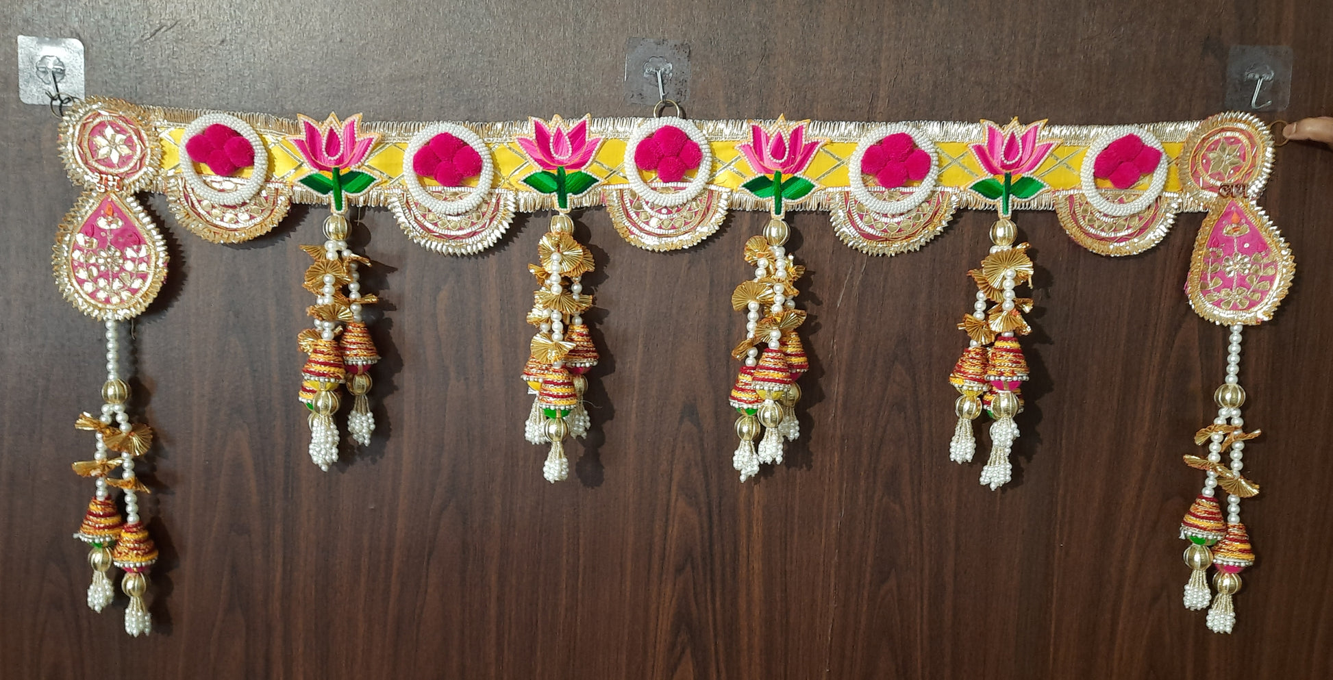 Ideal for festivals like Diwali, Navratri, Ganesh Chaturthi, or special occasions such as housewarmings and weddings, this toran blends rich Indian artistry with premium materials for a long-lasting, vibrant look.
