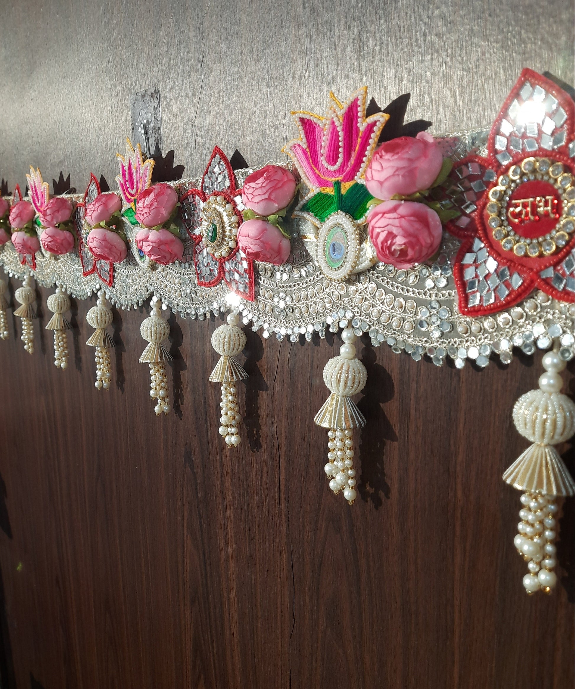 Lotus & Rose Shubh Labh Toran with Mirror Work and Pearl Tassels